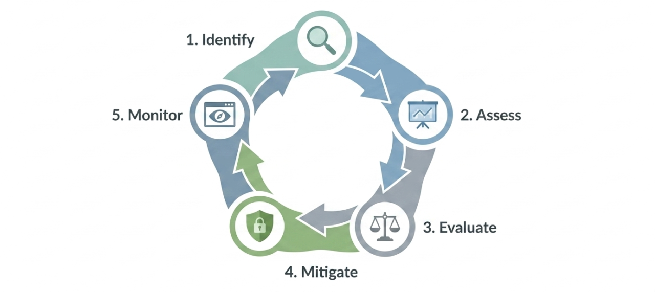 Identify → Assess → Evaluate → Mitigate → Monitor → Repeat